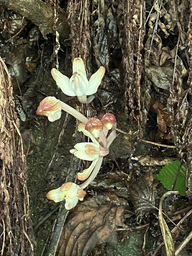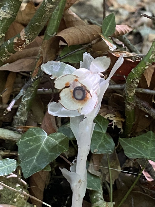 ギンリョウソウより先に見つけたのは、同じく腐生植物のキバノショウキランらしき植物を発見!