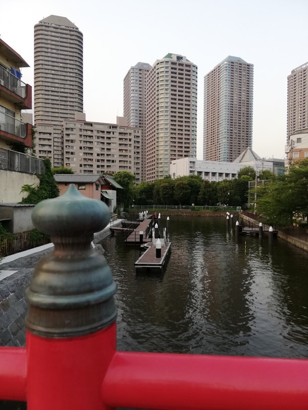 佃の昔っぽい街と高層マンション群のコントラストがまた面白い。