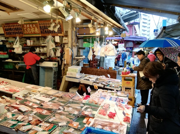 写真は三宅水産さん。実は築地でエビを買う率が高いのがここなんですね。最近は築地魚河岸の中にもう一軒あります。毛ガニもここかな!?最近は食べ歩きも頑張ってます。ここで食べるもの、新鮮なものが美味しいものはおすすめです!隣の漬物屋が片付くと、テーブルで立ち食いしやすい!