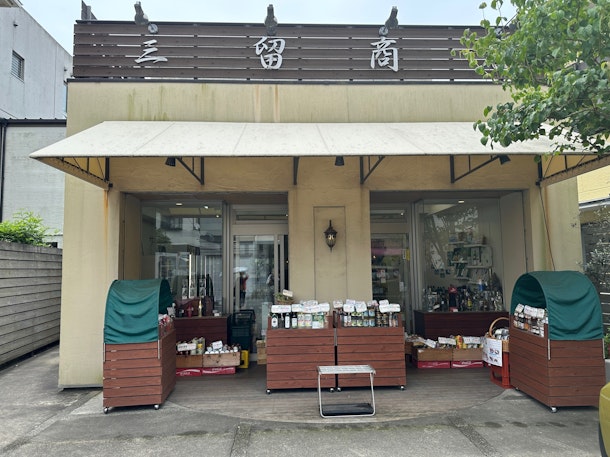 「鎌倉路地裏カフェ散歩」では、カフェ・史跡と合わせて、コースにある楽しいショップもご案内しています。こちらは坂ノ下の三留商店。地名の通り極楽寺坂を下った"坂の下"にあります。