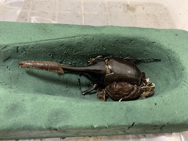 日本のカブトムシが2.3週間で出てくるので、その長さに驚きます。