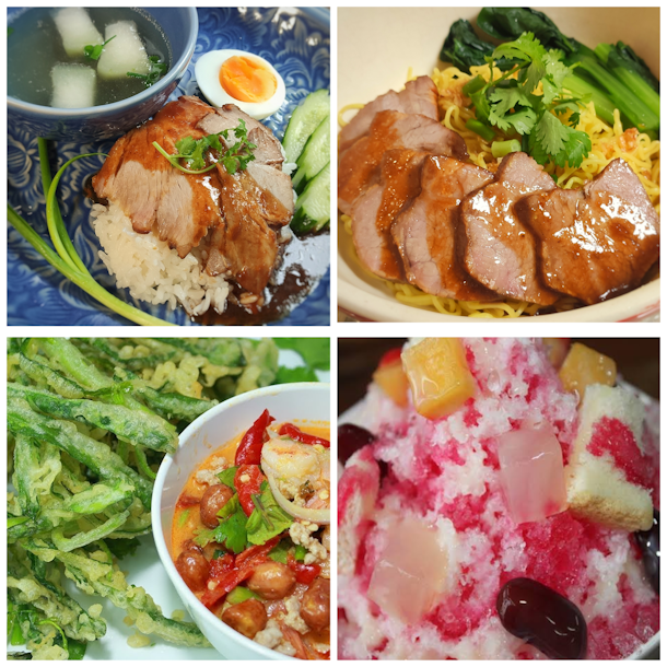 今回は夏にピッタリのタイメニューをご紹介します。タイ風チャーシュー、汁なし麺の食べ比べから始まり、冬瓜スープ、ピリ辛空芯菜天ぷらサラダ、そしてデザートのタイ風かき氷まで、バラエティ豊かな料理が揃っています。