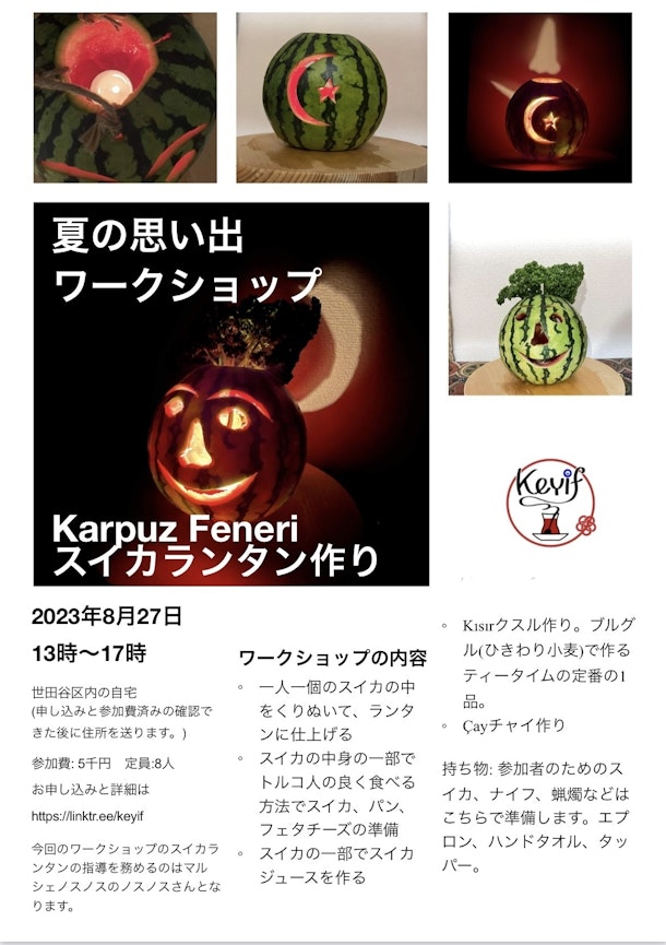 トルコの夏の思い出のスイカランタンを作るイベントをKeyifケイフの方で行います。