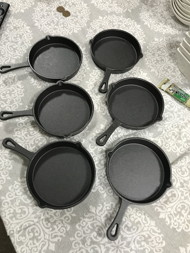 ダイソー様で鋳物のスキレットを6枚調達しました。今後、これを使った料理を追加してゆこうと思います。オーブン料理って大皿が多いなーというイメージがあったのですが、個別に提供できたほうが良いと思ってなにか良いアイデアは無いかと考えていたのでした。1枚200円で永遠に使えそう。そういうの好き。まずは9月5日の和風ハンバーグ(くりはらはるみ)で登場します。お楽しみに。