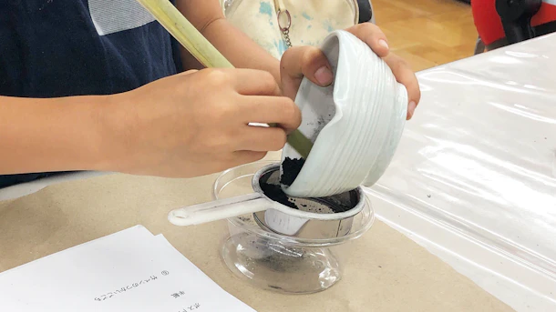 先日のワークショップでは小学1年生が参加してくれましたが、マイ竹炭墨汁を完成できました!
