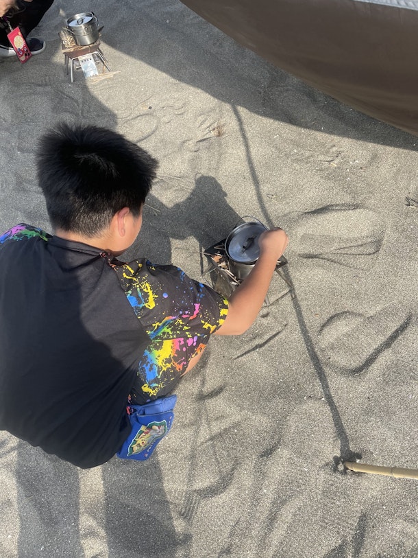 最近では市販の薪を使うことが多いのですが、今回は流木での焚き火ラーメン。