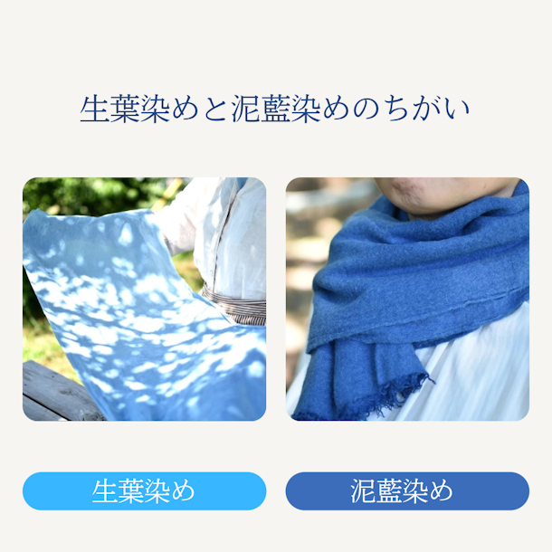 藍の手しごと「#1生葉染め」と「#2泥藍染めのちがい」