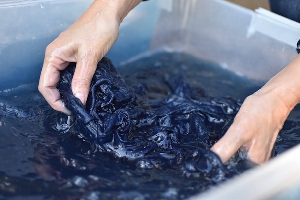 ①染料をつくる工程はありません。私たちが事前に染料を取り出す工程をして染料を貯め、当日には、染まるように調整しておきます。