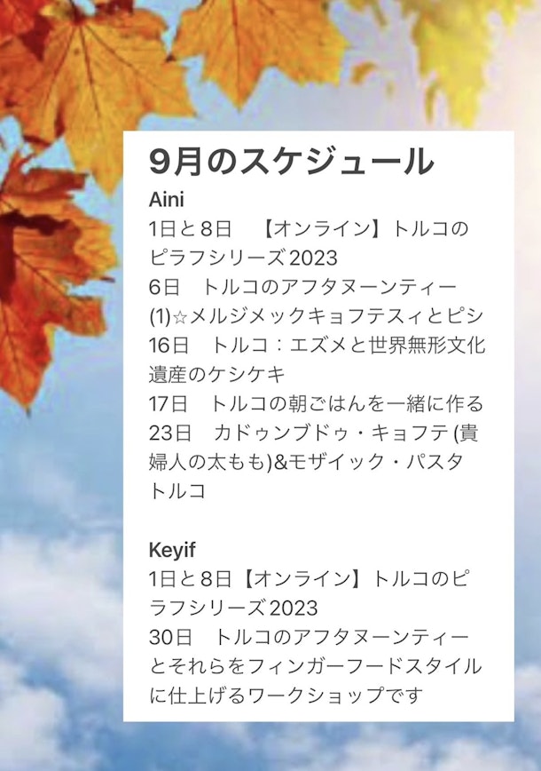 9月と10月のスケジュール
