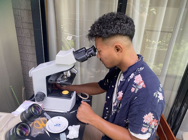 大人の方おひとり様ご参加の場合、プレパラートの作成も実際にやっていただきます。