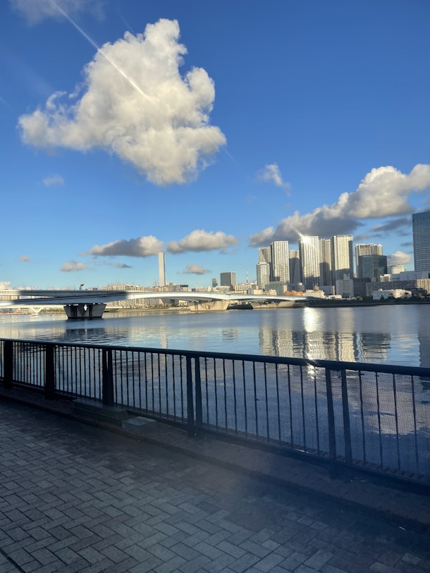 夏休み向けの体験最終日の朝。6時ちょっと前に豊洲駅から豊洲市場へ向かっってる最中の写真。