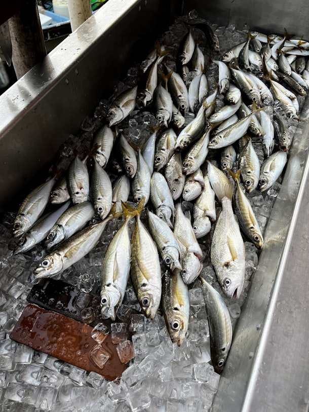 アジはポツポツあたりが出るも、序盤から中盤は小型が釣れることも多い様子。