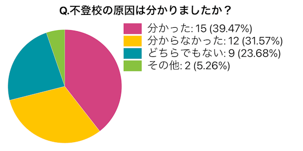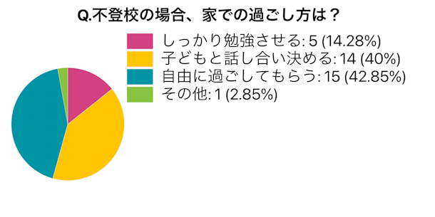 以下、子どもが「学校に行きたくない」と言ってから、最初に考えたこと・やったことアンケート調査(全15問)の結果およびご回答保護者からいただいたコメントを掲載いたします。
