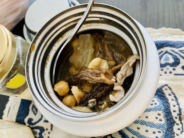 豆、お肉と冬瓜スープ(緑豆も少し入ってる)