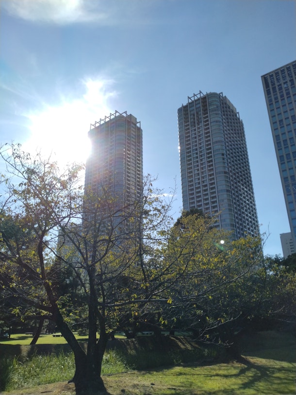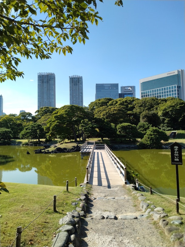 東京の中心部にありながらの、この雄大な景色。中央区の庭園です。