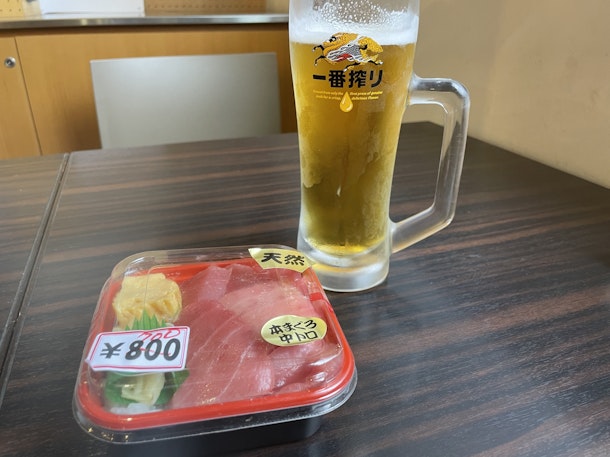 表通りの各種お店にと比べるとゆっくりできるのでおすすめ。日本酒、ジン、サワービールなど色々揃えてるうえ、フードは持ち込みok築地の上手い素材買い込むのもあり。