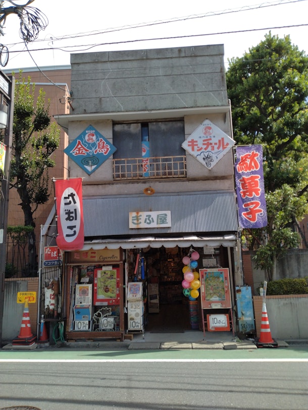 新井薬師前駅近くにある中野区が誇る、魅惑のレトロな駄菓子屋さん・・・。ホーロー看板は必要です😊。