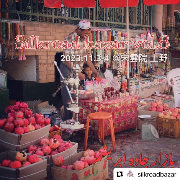 ・・・ シルクロードバザール第8弾‼︎ 雑貨で食でエンターテインメントで文化で…シルクロードが繋がります!! ようこそ東京のシルクロードへ! 日時:11月3日(金)・4日(土) 11:00〜18:00 場所:宋雲院(上野) JR上野駅浅草口より徒歩5分 東京メトロ銀座線稲荷町駅より徒歩3分 いつもの宋雲院さまをお借りしての開催です。 🐪入場無料🐫 ✴︎ダンスショー&ライブ ※両日とも投げ銭制です。ショーのあとはお気持ちをお願いいたします。 11月3日(金) 15:00〜 出演:Guliston @guliston.dance 駒崎万集 @mashukomazaki 雄大なユーラシア大陸の民族や地域ごとに異なるリズム、美しい旋律、華麗な舞をどうぞお楽しみください。ドゥタール奏者駒崎万集さんとのコラボもあります! 11月5日(土) 15:00〜 出演:トラペ座 祝祭と郷愁、狂騒と悲哀のテーブルミュージック。東欧〜コーカサス地方などの民謡・舞踊曲、映画音楽、それらをオマージュした創作曲を演奏。 ✴︎出店者(全店2日間出店) ⚫︎アサまーと @asa_mart 旧ソ連圏で生産されたソビエト製陶磁器を中心に、ハラショみあふれる現地の物品を販売します。 ⚫︎アゼルバイジャンの食卓 @azer_table アゼルバイジャンのドライフルーツ、ジャム、ワインや紅茶など ︎ ⚫︎アフガンサフラン @afghansaffronjp アフガニスタンの広大な大地と太陽の恵みを惜しみなく受け育った果実から作ったドライフルーツなど ⚫︎The Ancient World @theancientworldjapan オリエント地域に特化した、ワインと食品など。繰り返し現地に足を運び、その土地らしさを反映した厳選された商品を販売。 ⚫︎ОЙМО from Kyrgyzstan @oimo.kg.jp オイモ模様が映える刺繍コースターやクッションカバー、アクセサリーなど ⚫︎Oq Oymomo @oqoymomo ウズベキスタンで出会ったスザニや古くから受け継がれたウズベキスタンの陶器など ⚫︎office MAKSAT @officemaksat キルギスやカザフの遊牧民族料理「ボルソック」を販売。素朴だけど病みつきになる一口サイズの揚げパン。 ⚫︎ Ganjina/ギャンジーナ @ganjina.japan 中央アジア・ウズベキスタン・日本のイカットや銘仙などで小物製作。 ウズベキスタンとカザフスタンからのピアスやスザニ、民族衣装など ︎ ⚫︎グリシェンカフェ @gulishencafe_mojiko カシュガル仕込みのチャイ、今だけ限定カシュガルのローズティ(バラ茶) マニアック必見!グリシェン高校時代のZINEを販売。 ⚫︎Keyif ケイフ @keyif.japan Keyif(ケイフ)はトルコ語で 喜び、楽しみ、機嫌が良いなどの意味。シルクロードバザールではトルコの飲み物とお菓子など ⚫︎サラーム・サラーム @salamx24690 イランの絵本やイラストレーターのグッズ、雑貨などを販売しています。 ⚫︎ ソグディアナの月 @sogdiana_moon 旅行記、食文化、歴史や遺跡の本。アドラスの布小物やウズベク細密画の帯留めなど。 ⚫︎Tulpar @tulpar.eurasia カザフスタンやキルギスの職人やアーティストの作品、伝統的なモチーフを取り入れた商品など ⚫︎NAVRO`Z @maturiiiiin クウェート、ウズベキスタン、カザフスタン、モンゴルの雑貨。中央アジアで撮影した乙嫁語りコスプレ写真集(既刊)も頒布予定。 ⚫︎旅の本屋のまど @nomadbooks 中央アジアや中東、イスラム関連の本を販売予定。 ⚫︎ パミール シルクロードバザーでパミール高原の原石以外パミール民族の靴下や伝統的な帽子など ⚫︎birkahve(ビルカーベ) @birkahve_jp 中国・アジアを中心としたレトロ&ヴィンテージのキッチュな器やアジアのご婦人御用達の派手派手衣料など ⚫︎Hennaya Sunao @hennayasunao hennaタトゥーとアラブ、トルコの雑貨をメインに販売。 ⚫︎マルシェノスノス @marchenosnos カザフ刺繍、フェルト製品など ⚫︎Merv (メルヴ) @kalbiiselim1 トルクメン人がセレクトしたトルクメニスタンの雑貨を販売 ⚫︎Rishta @srp.rishta ウズベキスタンのイカットやスザニ刺繍、オリジナル商品、一点もの陶器やソ連時代のヴィンテージ陶器など。 ⚫︎Lilin-manis @lilin_manis_candle シルクロードの街並みやモスクなどからインスピレーションを得たキャンドル、フレグランスワックス、アクセサリーなど ✴︎民族衣装を着てみようコーナー シルクロードな雰囲気満点の民族衣装とフォトスポットをご用意します。試着と撮影をお楽しみください! 企画・主催:マルシェノスノス 会場:宋雲院