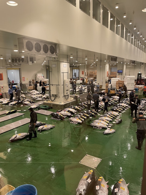 見学デッキで見た後から始まるツアーでより深く、マグロの競り見たり聞いたり、仲卸の人々の話やこぼれ話などの市場入門体験してみるなんてのはどうですか?