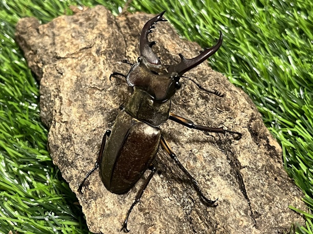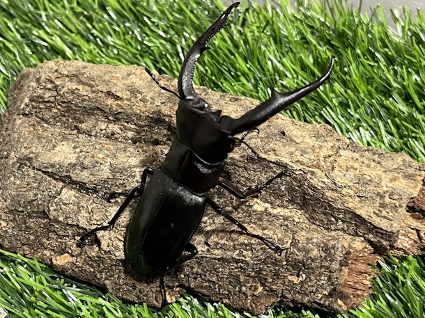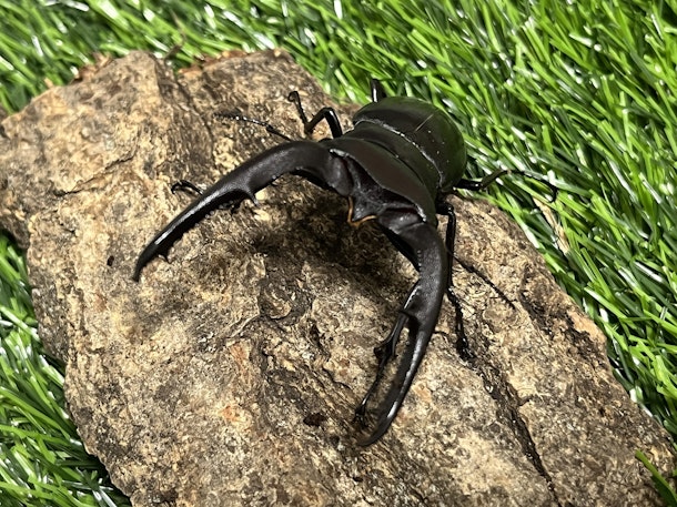 大アゴ(ハサミのこと)がとても長くかっこいい外国のクワガタです。触るとこのように威嚇します!!