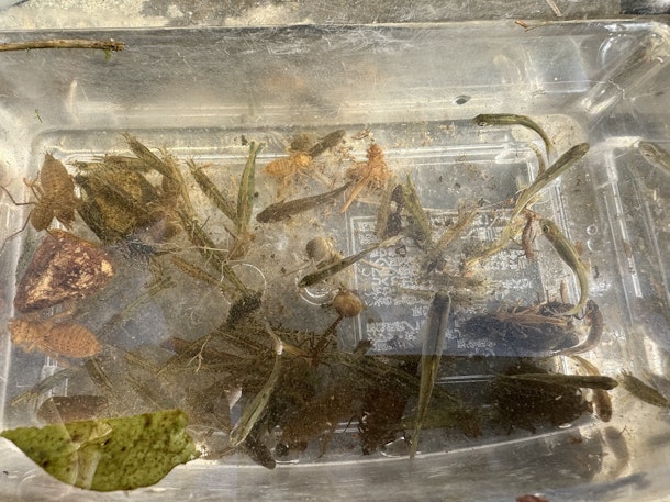 写真は体験中に観察できたゲンジボタルの幼虫・さまざまな生き物・5種類のヤゴです!