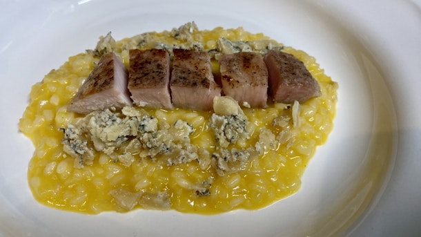 アロス・メロッソ・アル・アザフランを紹介しよう。 貴重なスパイスであるサフランが、この料理に黄金色と独特の風味を与え、あなたを地中海地方へといざなう。 チキンのブイヨンは家庭で丹念に作られる。米一粒一粒に心地よさと風味を吹き込むベースとなる。 ブルーチーズは塩気があり、とろけるような味わいで、コクとクリーミーさを加え、他の食材を完璧に引き立てている。 豚肉は完璧に調理され、ジューシーで風味豊か。 スペインを食卓に。