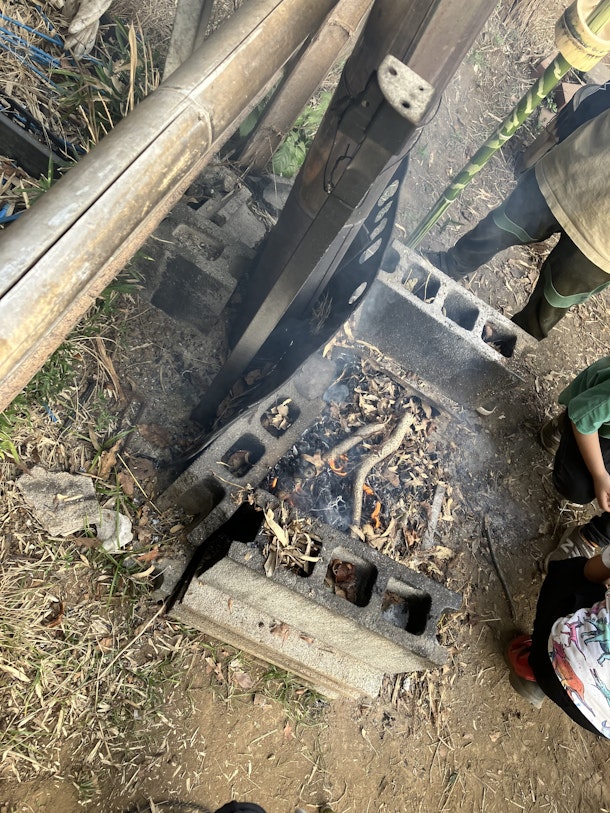 🎋竹の工作のあと、みんなで、落ち葉🍂の火遊び体験をしましたー!