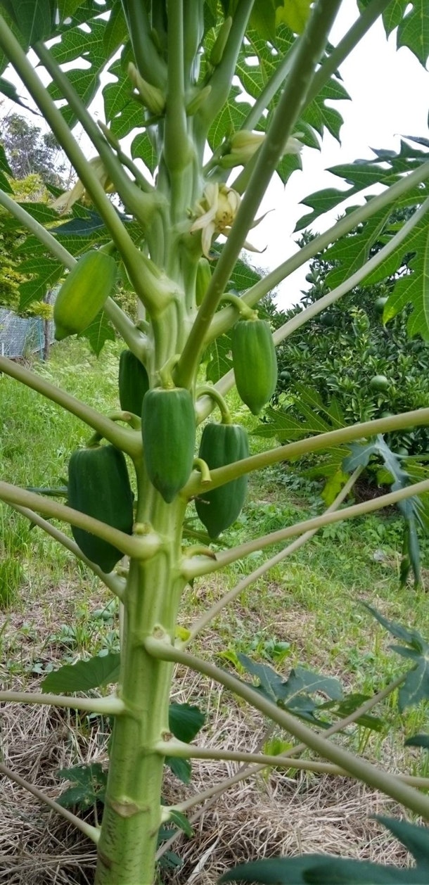 これは、青パパイヤと呼ばれ、野菜として食されることから、野菜のパパイヤとも呼ばれています。歴史古く、古代マヤ文明の遺跡の周辺からパパイヤの群生が確認されており、食用、薬用として重宝されていたとのこと。そんな、青パハイヤも食べれるかも、、、。是非、矢倉沢の体験に来てくださいねぇ。お待ちしております。