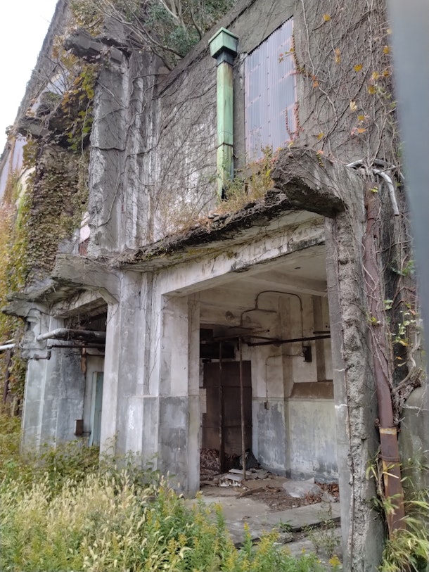 廃墟にも関わらず、気品溢れる建物・・・それもそのはずで、当時では珍しく、米国の先進的な施工技術を使っており、お洒落な外観になっているのである。