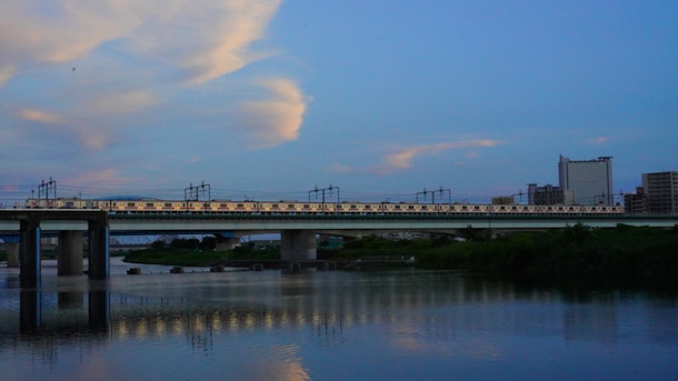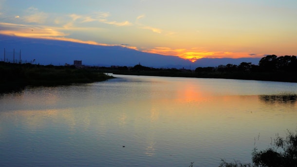 夏の日、多摩川に沈む夕陽を追いかけてみました。