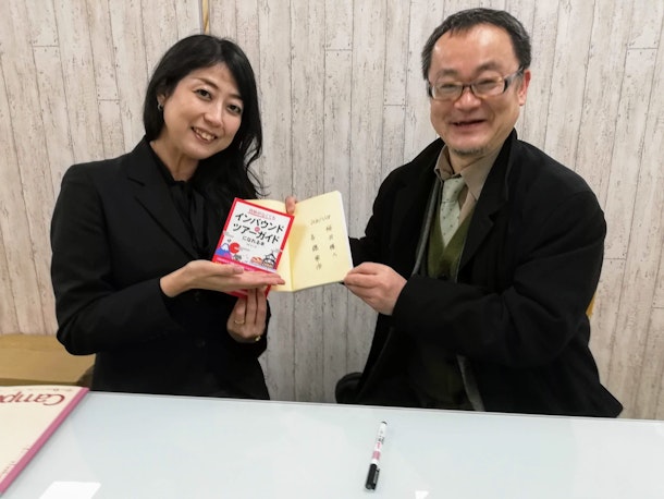 冒頭、嬉しいことに、千葉市観光プロモーション課課長 桜井さんが、「資格がなくてもインバウンドのツアーガイドになれる本」を読んで、面白かったと声をかけてくれました。しかも、酔狂?なことに、著者である私のサインを本に書いてと依頼がありました。