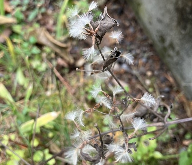 今年の夏の暑さ、9月までの残暑。圧倒されました。その後、やっと季節が進み始めました。コボタンヅルの花が終わり、羽をつけた果実が軽やかに飛び立とうとしています。そんな季節です。