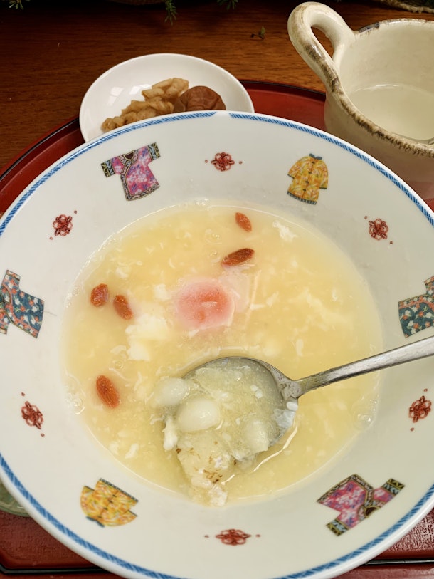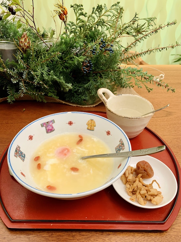 新鮮な百合の根、地鳥卵、クコノミも入れました