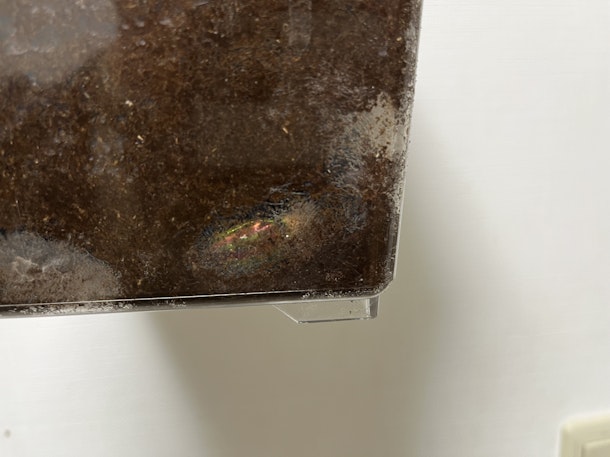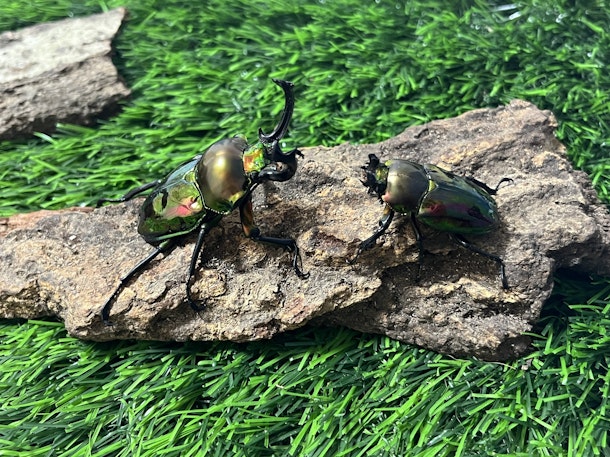 みえにくいですが、ケース越しにもキラキラしたニジイロクワガタのからだが見えています!この光景は幼虫から育てたニジイロクワガタならではですね。