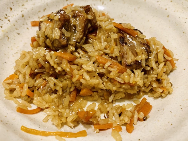 晩御飯ストーブで地元の羊混ぜご飯を作りました