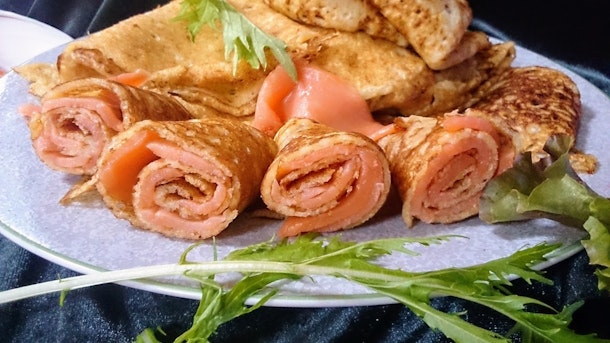 === Фаршированные блинчики с красной рыбой(サーモン巻のブリニ) サーモン巻のブリニ