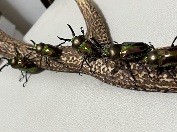 オス4匹メス1匹でした(鹿の角にのせてみたよ)