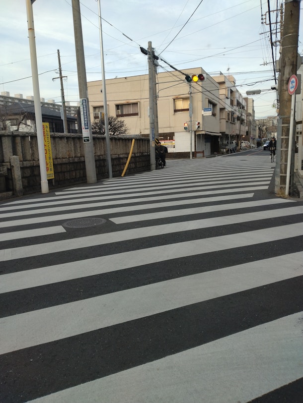 商店街を抜けたところに異様に横断歩道が長い(約30メートル)道路が・・・。