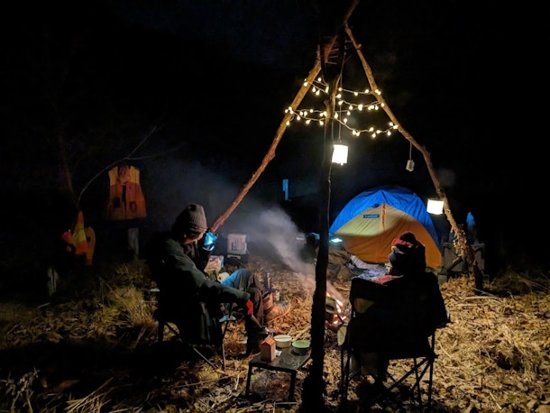 正月休み恒例の狩猟キャンプ。 今回の狩猟キャンプで思ったこと。 「災害時のサバイバル術としてキャンプ経験を。」 令和6年能登半島地震、 被災された方々に心よりお見舞い申し上げます。 被災地の一日も早い復興を心よりお祈り申し上げます。 私が東京あきる野に引っ越した理由と狩猟を始めたキッカケは、 3.11東日本大震災です。 生きているうちに再び大きな災害に遭うと思っています。 自分の得意なことであり、数少ない世の中の役に立てることは、 キャンプのやり方をお教えすること。 キャンプといえば夏のイメージですが、 災害対策として一度冬キャンプを体験されることを強くおすすめします。 (冬の方が、星綺麗、お鍋が最高、焚き火が極上、何より虫いない) 今回の発見。 サイリウム、遭難時に役立つかも。 夏のキャンプイベント用に買った、100均のサイリウムこと蛍光棒。 余っていたので、持って行ってみました。 うりゃおい!うりゃおい!がやりたかったのではありません。 闇夜で目立つ。 ただ、氷点下では光が落ちるので、時折焚き火で温めました。 というわけで、 冬キャンプ体験にご興味ある方はお問い合わせください。 http://salarymanhunter.com/blog-entry-102.html #キャンプ #親子キャンプ #サバイバル #狩猟 #狩猟体験 #自然体験 #焚き火