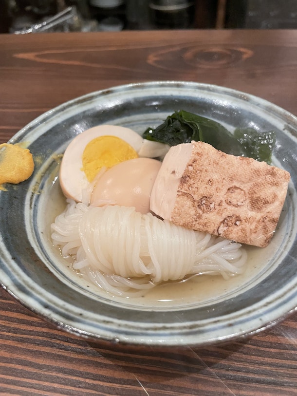 おでん。生わかめは、注文してから湯で初めて色が変わったら一緒に出てきます。