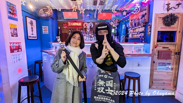 aini のゲスト様とは、体験終了後にアルコールを楽しむことはありませんので、誤解なきようお願いしたいですが、浅草地下街の忍者バーでのスナップです。