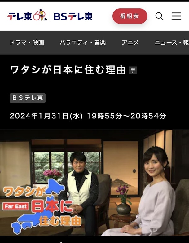 2024年1月31日夜7時55分放送「BSテレビ東京【ワタシが日本に住む理由】」のゲストになっています。 中々自分についてこれほど話をするのは無くて、どのような仕上げになったかはとても楽しみです。