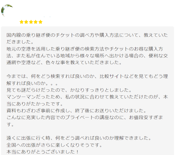 今一番教えていただきたいのが、飛行機の乗り継ぎやチケット購入のことです。」と連絡をもらいました。