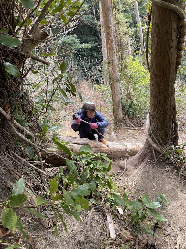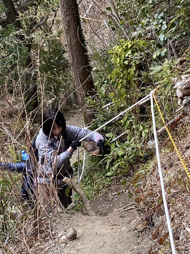 少し崩れたハイキング道は整備されてロープが張られて安全ですが、それでも注意が必要です。