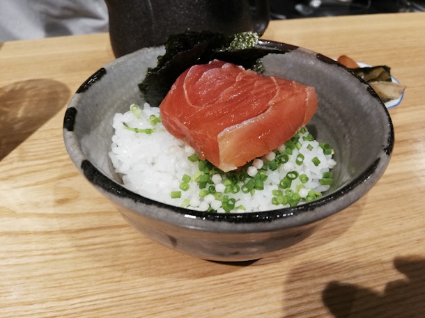 久しぶりにコース外のしめの茶漬けをいただきました。づけが乗ってます!確か真梶木だったかと思います。