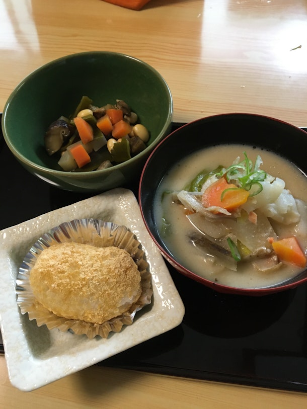 鮭や野菜や大豆など具だくさんの粕汁もぜひ。こちらも毎年好評です。