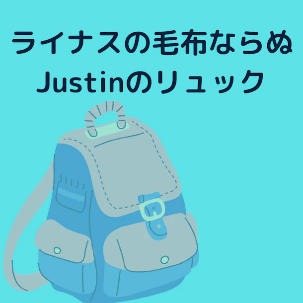 今日はライナスの毛布ならぬジャスティンのリュックのお話です