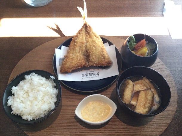 漁港から直送されたアジのフライは、ふわっふわでした。