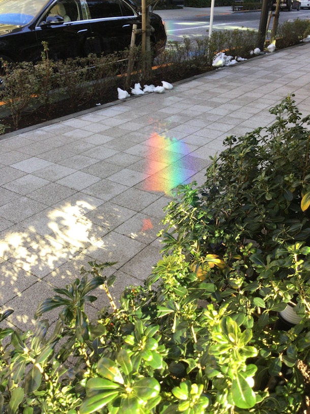 食後は、芝教会付近に出現する路上の虹をまるちゃんに見てもらえたらと思ったのだけど、残念ながら虹の時間にはちょっと早かった。