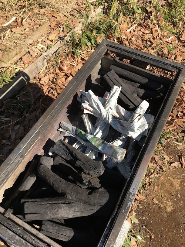 着火剤無しで炭に火をつける方法で、炭を並べました。